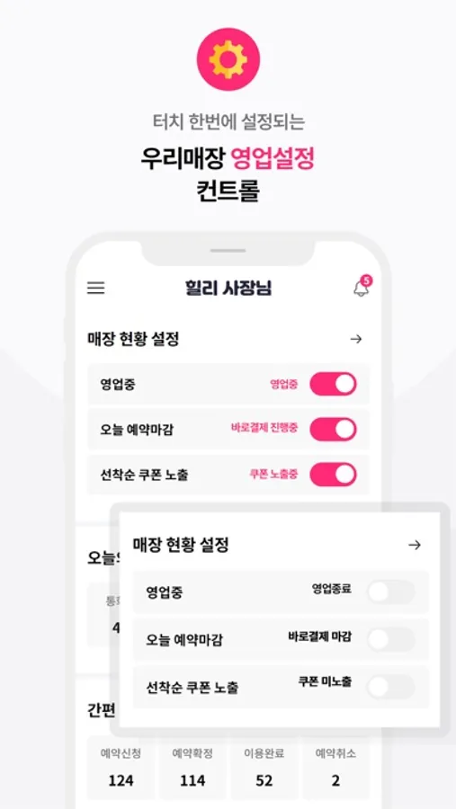 개인화된 푸시제공 및 설정기능제공 (즉시가능인원/영업시간 등 설정)