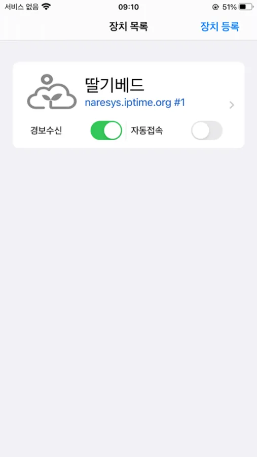 원격에서 아이폰을 통해 CCTV 영상을 확인하면서 비닐하우스의 개폐기를 제어하고 온·습도, CO2 등 각종 센서데이터를 확인할 수 있으며, 정전/고,저온/침입 등의 상황발생 시 경보를 알려주어 적절한 조치를 할 수 있도록 해 줍니다.