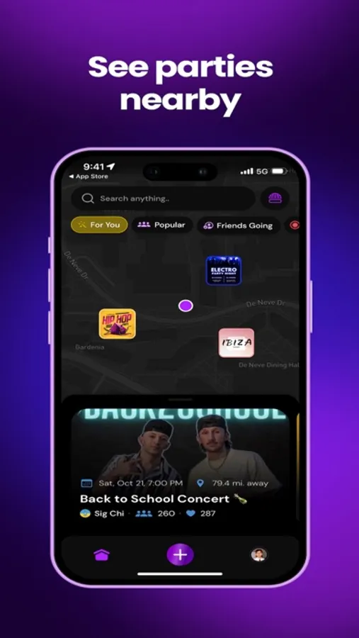 See who’s going, join the guest list, and purchase tickets directly in-app. Find popular, live, or free events on a map using the Discover Feed. See events your friends are attending, get tickets, and use Poppin to scan in quickly. Anyone can create an event; it’s completely free.