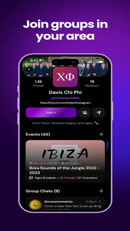 Build an authentic network of friends. See which events your friends are going to, share profiles and events with others, and RSVP together. Chat with others going to your event.