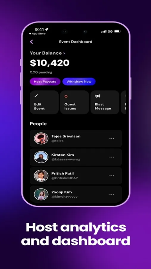 Hosts trust Poppin with ticketing and scanning. Easily fill your guest-list with event discovery in our launched areas. Experience first-class ticketing features like audience-based text blasts, customizable links, and advanced metrics. It’s all powered by the brand-new Party Dashboard for Hosts. And you get paid 100% of your ticket sales, all in-app, with Host Payouts.