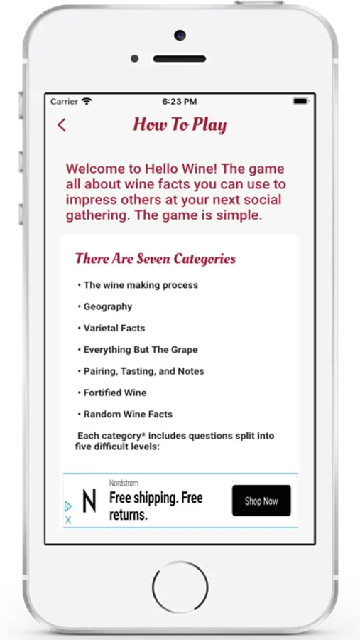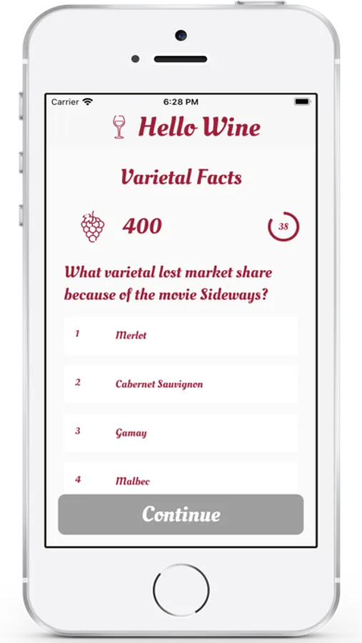 Hello Wine is a trivia game all about wine. Challenge your friends to see who knows more about celebrity wine, wine in film, the winemaking process, glassware, wine geography, and more!