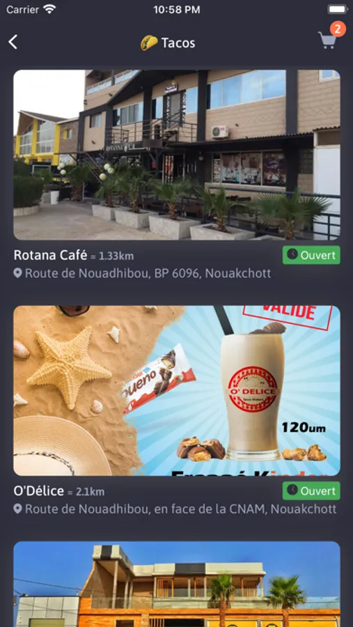 - Possibilité de commander chez plusieurs restaurants en même temps