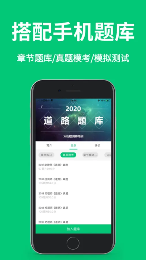 APP内集成了公路水运试验检测师考试的全部专业,包括《公共基础》、《道路工程》、《桥梁与隧道工程》、《交通工程》、《水运材料》、《水运地基与结构》六个科目的考试培训课程视频、检测题库、历年真题、模拟题、实操试验等内容,应用内设置了录播课、在线直播、模拟考场、在线答疑、留言讨论、资料下载、行业资讯等多种人性化的板块,同时视频的播放支持快进快退、倍速播放、护眼模式、音频听课、离线缓存等多种实用小功能。