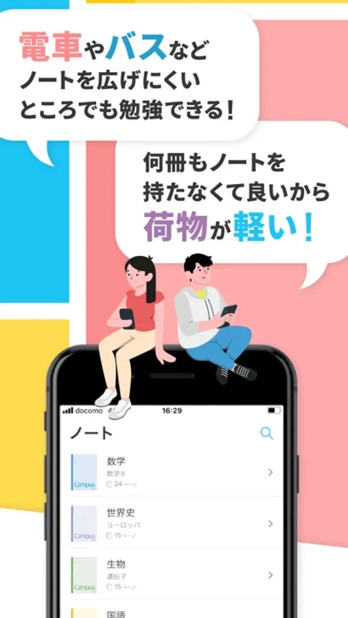 ・ノートを持ち歩かずに勉強ができて、通学の時に役立っています