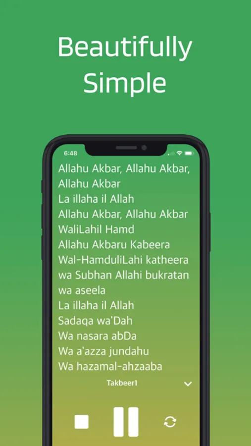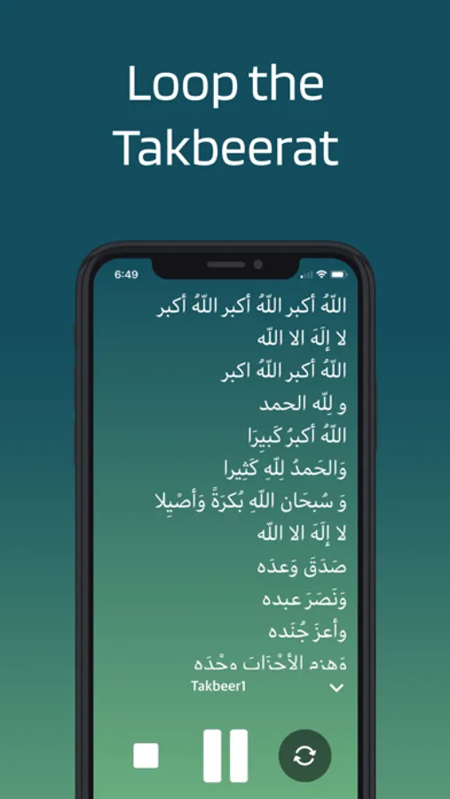 This application provides visual and audio aid to people reciting the End Takbeer. You can even loop it and have it play in the background. This is perfect for Eid Mornings and the drive or walk to Eid Prayer.