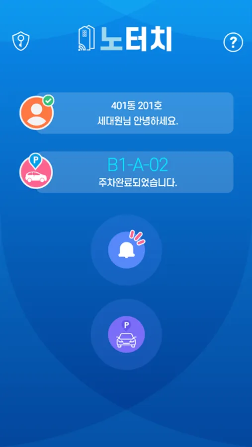 비상벨 장치가 장착된 주거 환경에서 해당 앱을 사용하여 비상호출과 주차기능을 사용할 수 있습니다.