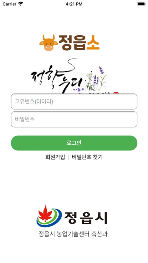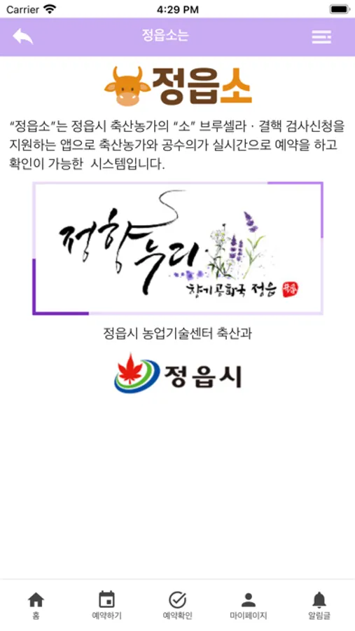정읍시 축산농가의 “소” 브루셀라ㆍ결핵 검사신청을 지원하는 앱으로