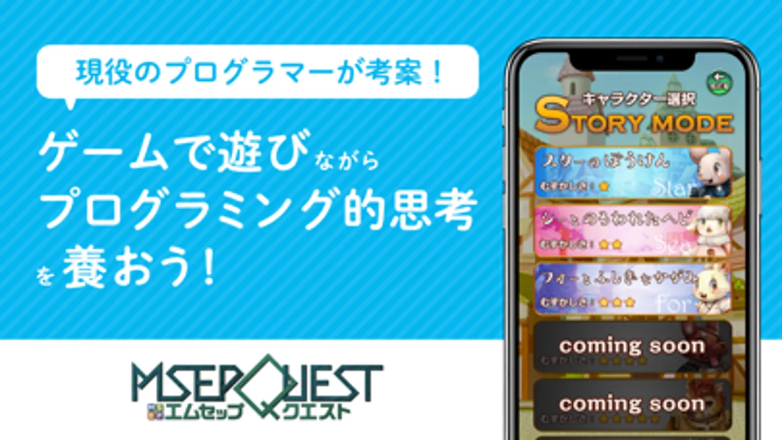 About エムセップクエスト 物語型プログラミングゲームアプリ