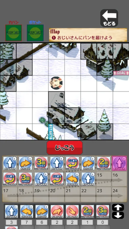 わかりやすいアイコンで表示された命令ブロックを組み合わせてキャラクターを動かし、パズルを解いていきます。