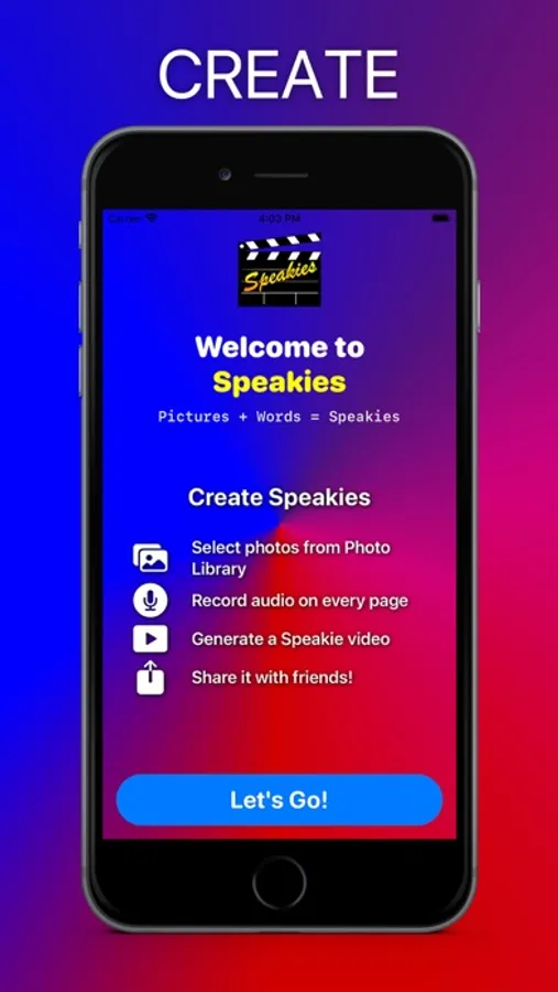 Ever want to take some photos and say something about each one? Then string them together seamlessly into a video slideshow that’s ready for the social media spotlight in minutes - not hours? Then SPEAKIES app is perfect for you -