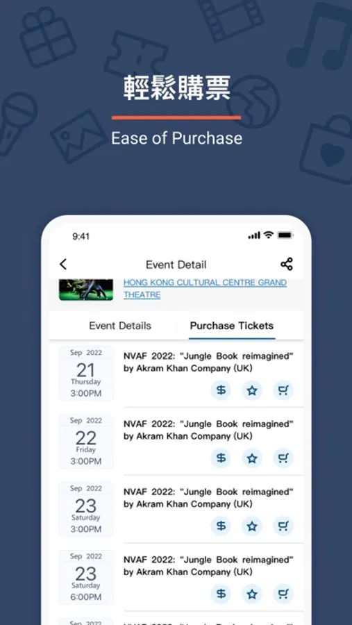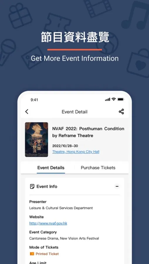 “URBTIX” is a brand new mobile app to facilitate ticket buyers to make purchases online using smart phones more conveniently. For ticket buyers who have registered as members, this app will further provide a wide range of personalised functions to enhance their buying experience including bookmark on favourite events, email reminder to attend purchased events, keeping and transfer of e-tickets, use of biometric authentication features such as fingerprint / face ID for member log-in, etc.