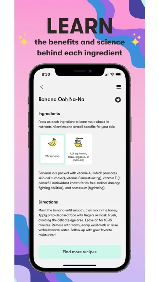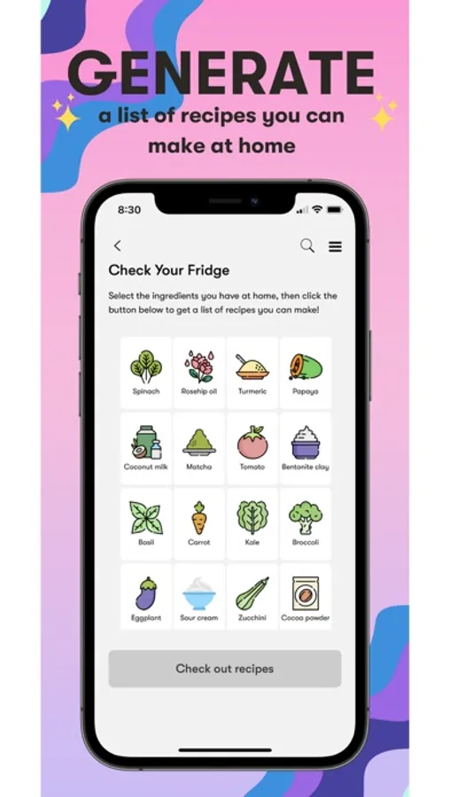 • Unlock our Check Your Fridge feature, where you can select ingredients available to you and receive a list of masks you can make!
