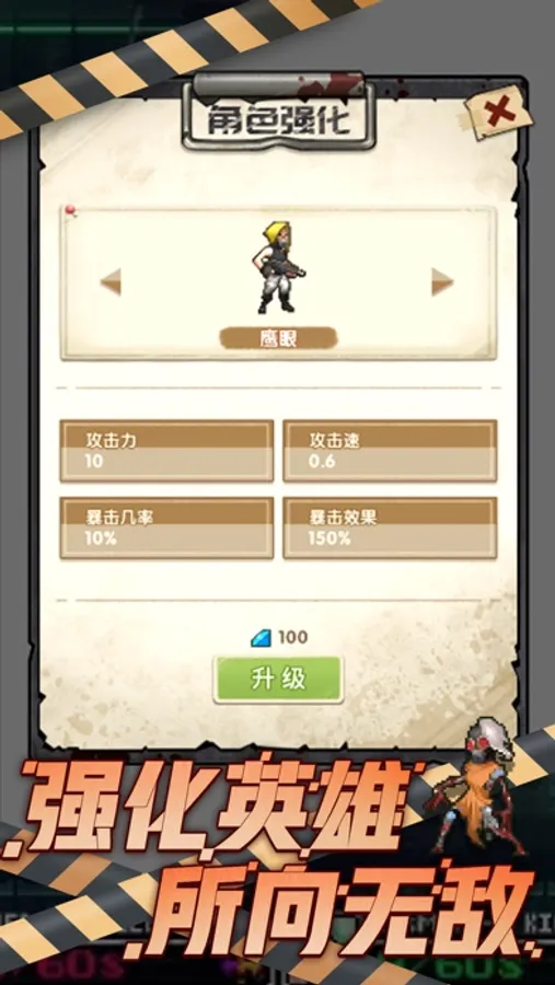 -Character enhancement: defeat the enemy to obtain diamonds, strengthen the character with one key, and add BUFF to the firing firepower