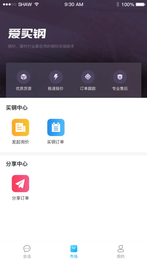 爱买钢APP,链接钢材产业链接一切。是爱买钢为钢贸行业用户推出,满足钢贸商务闭环的软件,为用户提供线上交易、金融、物流等各个环节的服务
