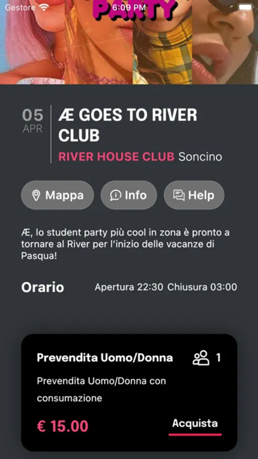 Grazie all’applicazione Clubbing puoi trovare i migliori eventi nei club più cool della zona, acquistare i biglietti online ed accedere in maniera semplice e veloce, in completa sicurezza.