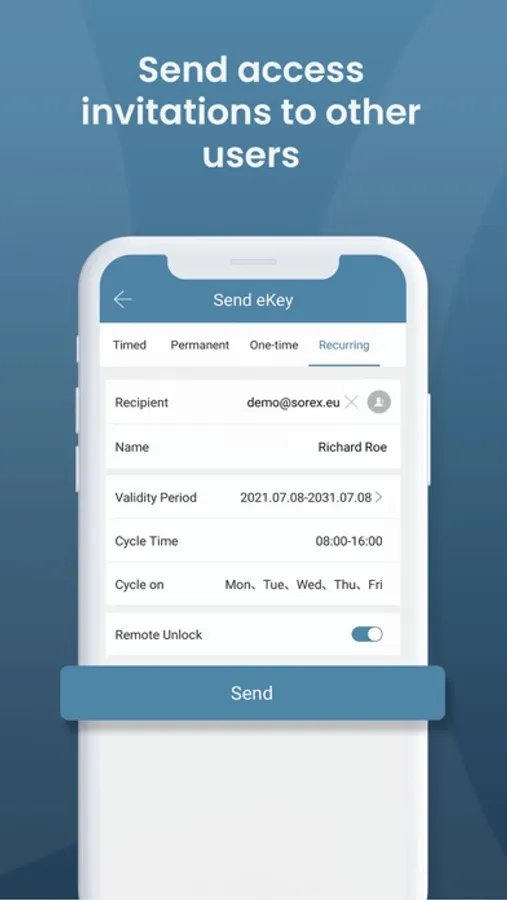 With the SOREX SmartLock app, you can easily manage and configure your SOREX door locks from anywhere. You can grant users access, create time profiles and read access logs. Also you can set a passage mode for certain times. Depending on your lock, you can also create pin codes, add fingerprints and RFID media.