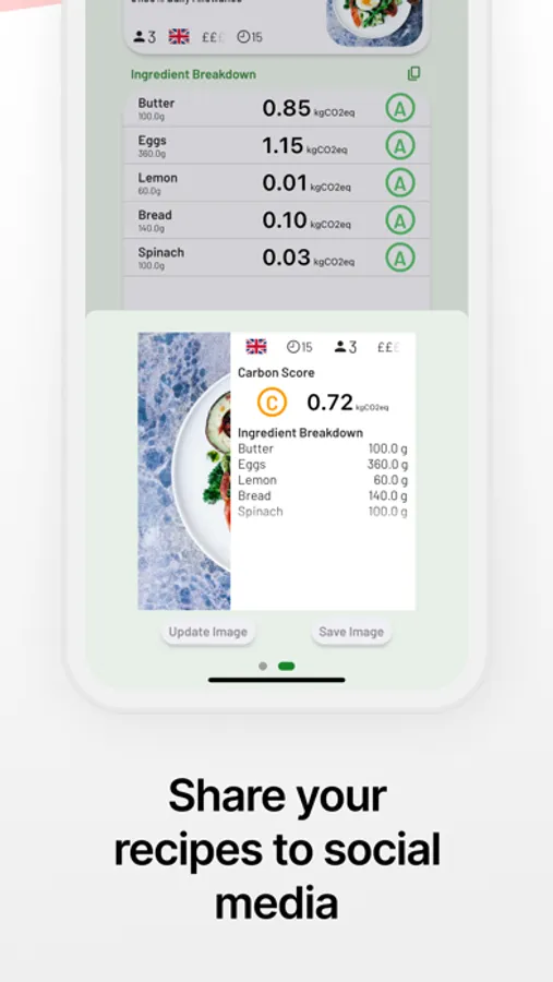 Label your food post with its climate score to share the impact with your followers, allowing them to make more climate conscious dietary decisions.