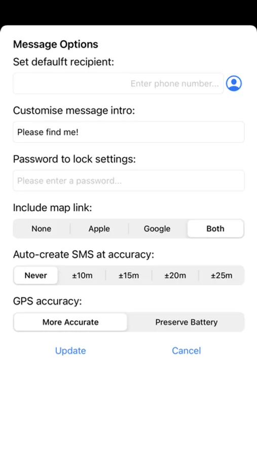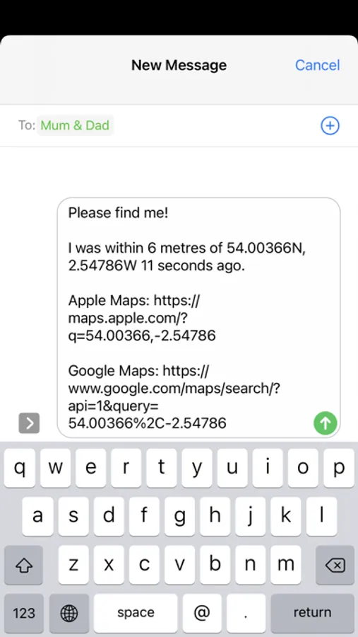 No data signal required, no access to the maps app required, no complicated interface, just GPS and SMS (Note: message settings must be configured to send SMS when iMessage is unavailable). Most important: NO TRACKING - you only share your location with the people you want to, when you want to. All customisation data is stored locally on your phone too.