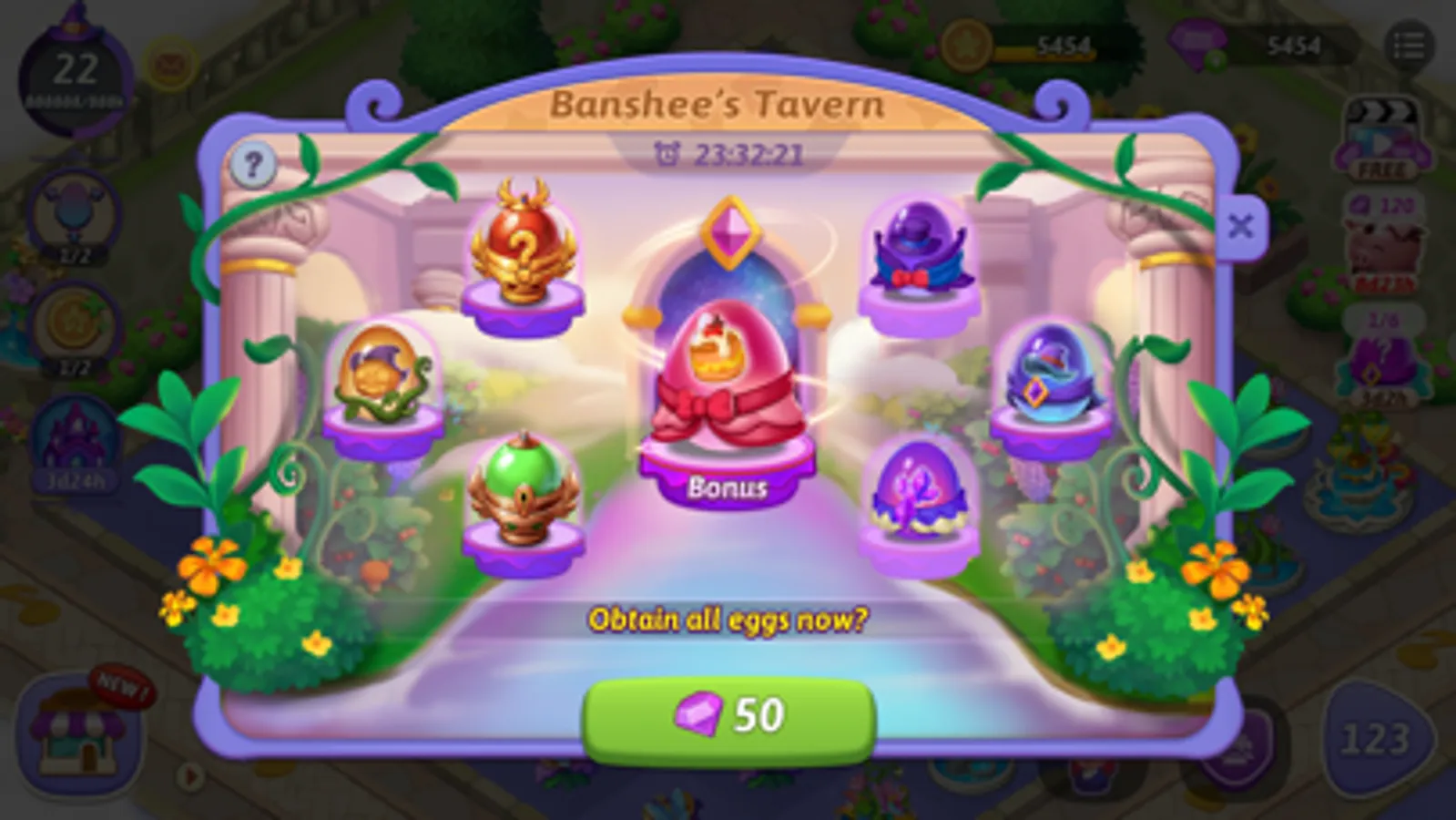 To complete the target, firstly, you need to collect more cute creatures to help you get more power to disperse the dark smog and design home in this merge puzzle game! The baby witches like to sleep and can not even do so many jobs, so you need to solve merge puzzles to collect, hatch and merge witches to make them stronger and they won’t sleep very long and will help you get better rewards.