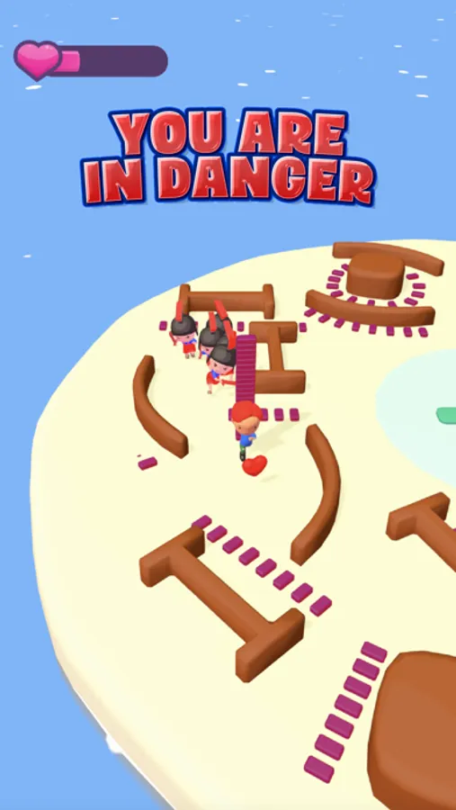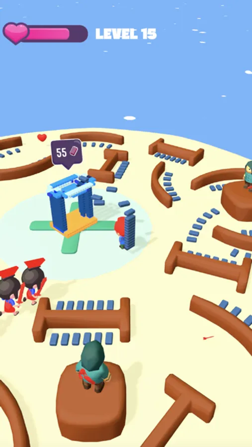 A Platform! Has many bricks everywhere. You will help mini hero to collect and stack bricks. When mini hero brings bricks to the center of the platform automatically run-away vehicle is being built.
