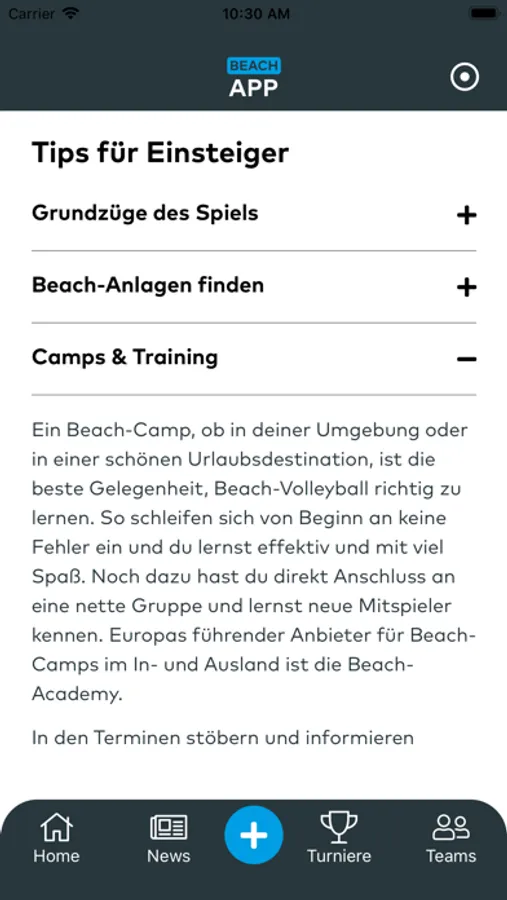 Und das ist natürlich längst noch nicht alles. Wir liefern dir Tipps für dein Spiel und vieles mehr. Von der neuen Übung für dein Training über Infos zu attraktiven Turnieren bis hin zu den Beach-Courts in deiner Nähe – wir versorgen dich mit regelmäßigen Updates und Tipps zum Beach-Volleyball-Spielen.