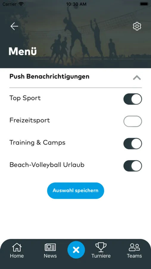 Dank der Push-Nachrichten verpasst du keinen Livestream, Ticket-Verkaufsstart und keine News mehr! Du entscheidest, welche News oder neuen Turniertermine für dich am spannendsten sind, und kannst zwischen verschiedenen Themen aus dem Top- und Freizeitsportbereich wählen.