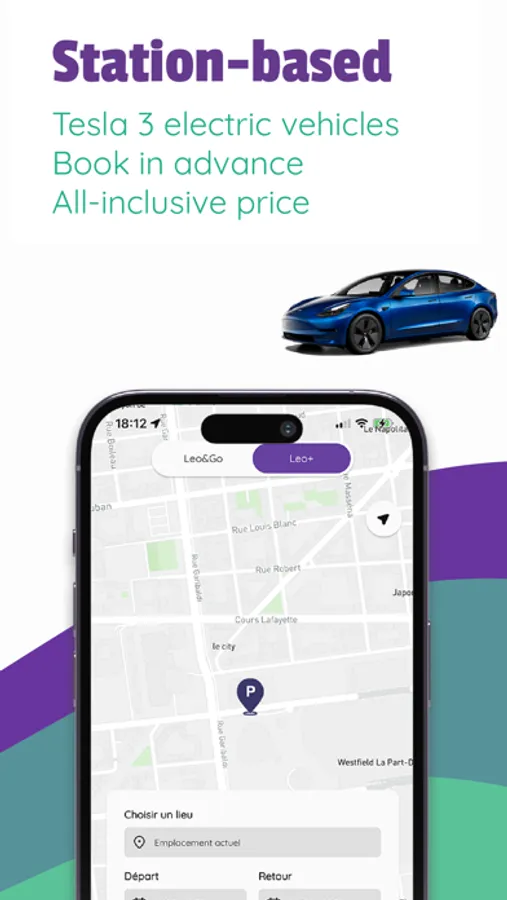 Reserve a Tesla 3 at our Leo+ Station located in la Part-Dieu for a luxury ride that is 100% electric, with a guaranteed parking space upon your return!
