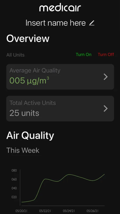 This provides additional features for the MedicAir devices. Shows historical data from the MedicAir sensors as well as functionality for bulk device control and report generation.