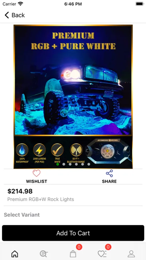 Larger than life automotive lighting solutions to make you feel damn good about your vehicle! RGB+W Rock Lights, Wheel Lights Etc!