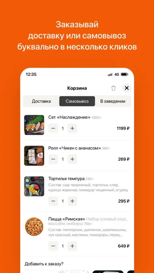 — Быстрый заказ с мгновенным подтверждением через приложение.