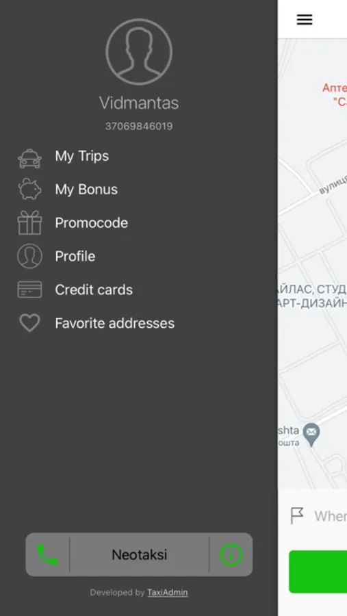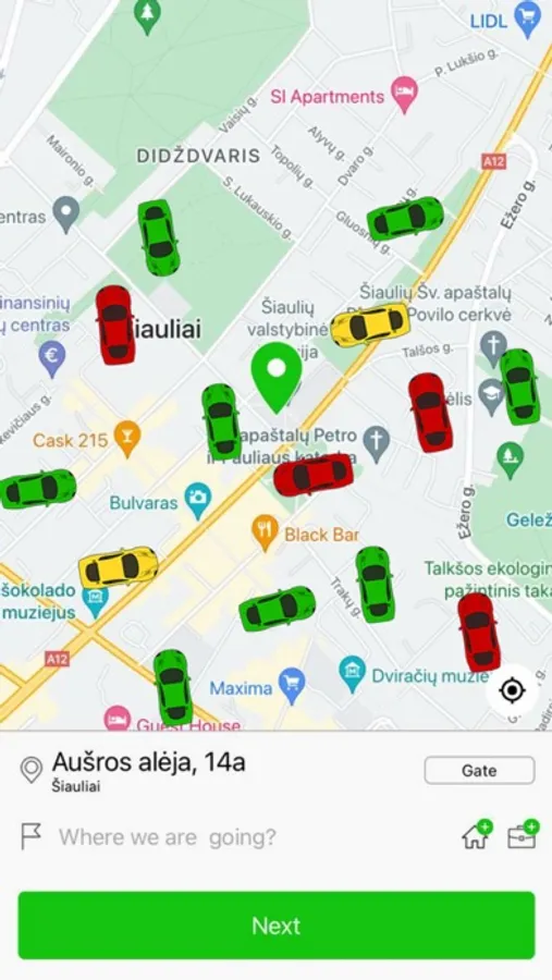1. Atsidarome NEO taksi programėlę ir patiksliname iškvitimo vietą.