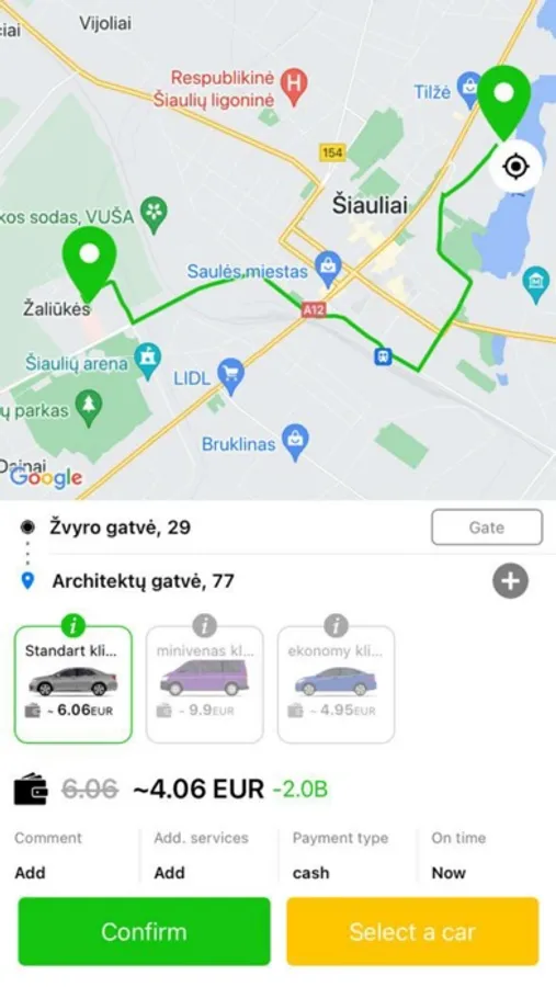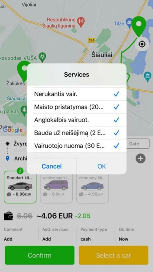 • Išsikvieskite taksi ir nurodykit kelius kelionės tikslus