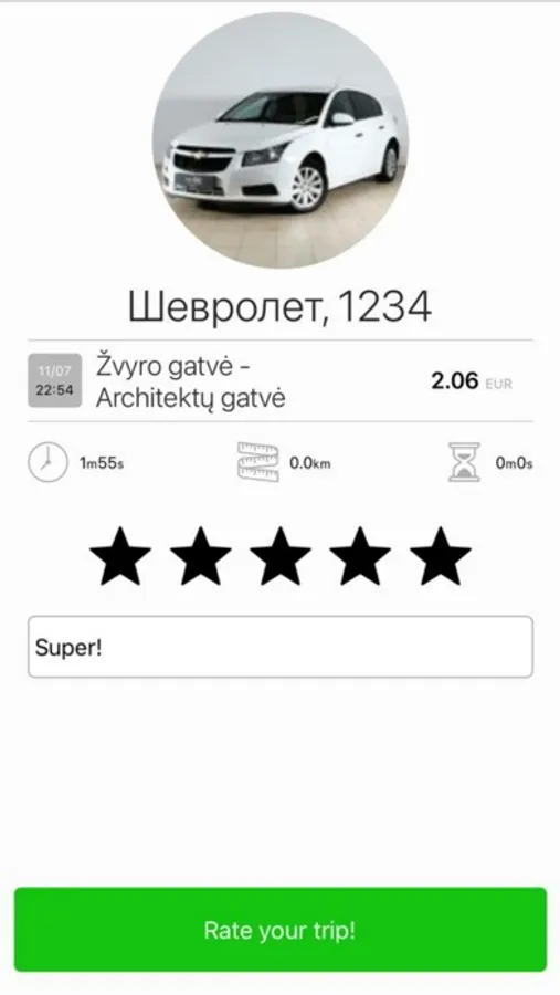 • Įvertinkite vairuotoją kelionės pabaigoje.