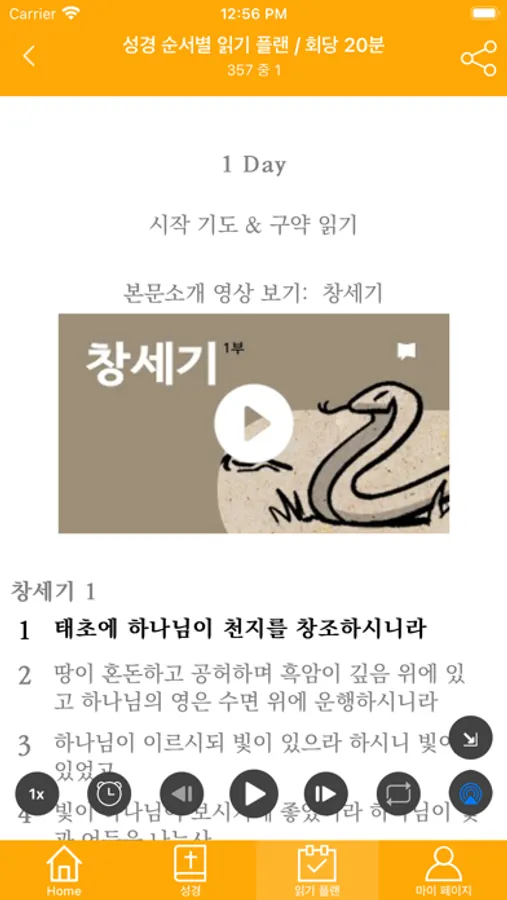 3) 여는 기도로 '시편' 한 편을 듣고, 읽기플랜 순서대로 '성경'을 듣습니다.