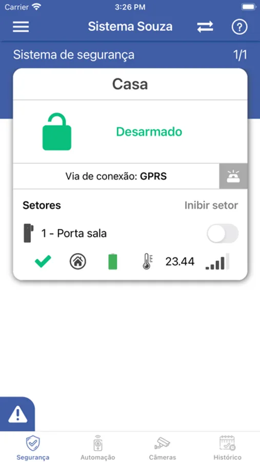 - Realizar ações de segurança como: Arme, Desarme e Arme Interno (Stay) remotamente