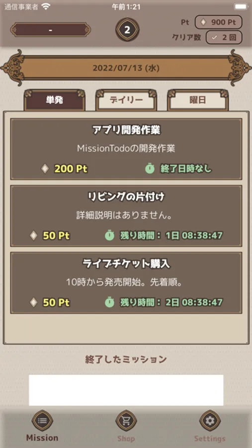 ミッションの難しさに合わせて報酬を設定して、ポイントを貯めよう。