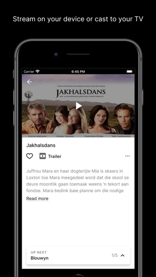 JA is a digital streaming platform with the intention of safeguarding the Afrikaans language and culture. By joining you help to ensure that this happens. 50% of your membership goes directly to financing productions of films, series, documentaries, short films and even theater pieces. This provides countless jobs for experienced and up and coming young Afrikaans filmmakers.