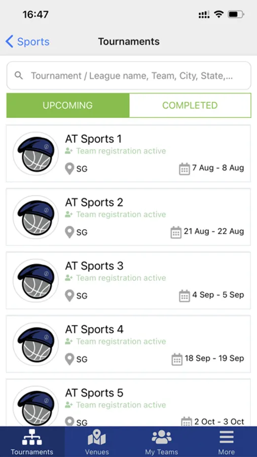 • Search for tournaments