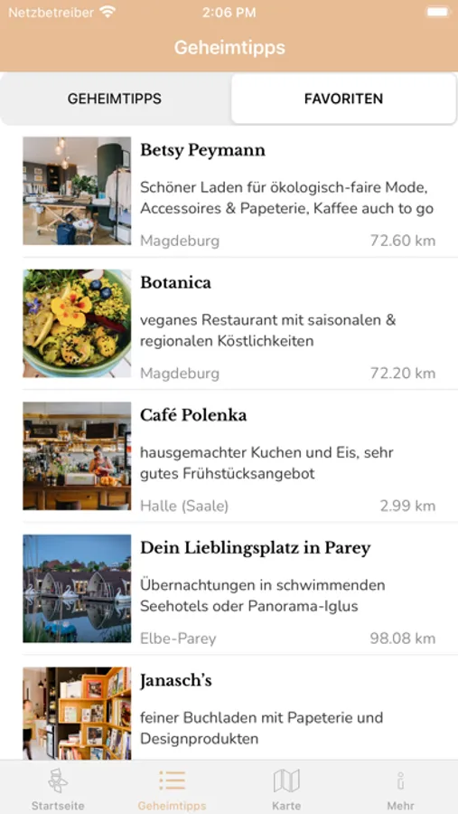 In der App Geheimtipp Sachsen-Anhalt empfehlen wir dir unsere Geheimtipps weiter. Entdecke Orte abseits der Touristenpfade - von der Altmark bis zur Unstrut - die kleinen feinen Läden, ausgezeichnete Gastronomie und besondere Unterkünfte.