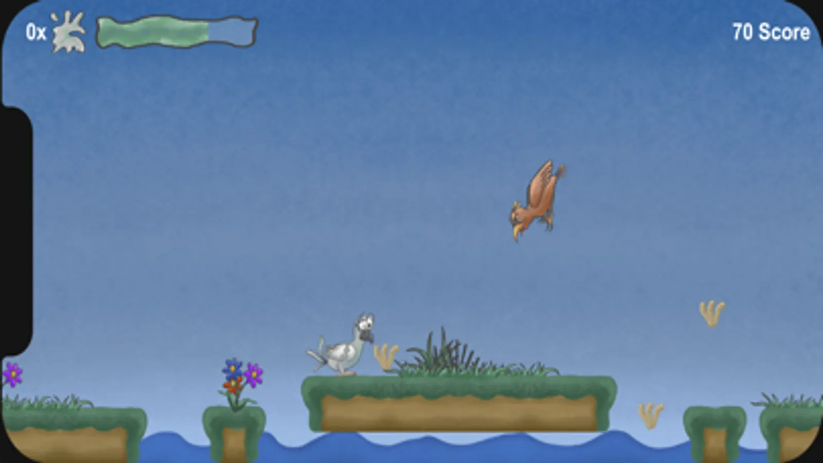In "Gurr" you play a pigeon. Just like in reallife you run and jump around and eat fries from the floor. By eating fries you gain score points and energy. A filled energy bar provides you an "drop" for further usage. You are now able to fly over a crowd of people and drop - let's say "Something". By hitting someone with your drop you gain more score points.
