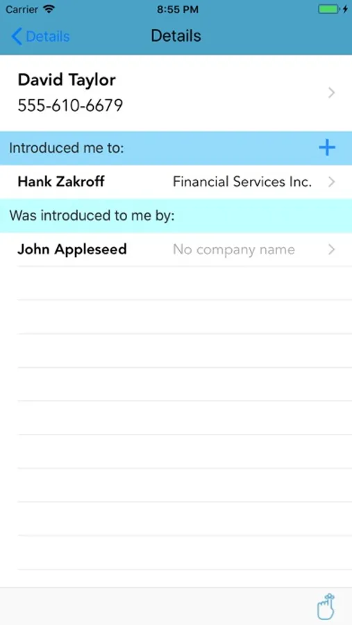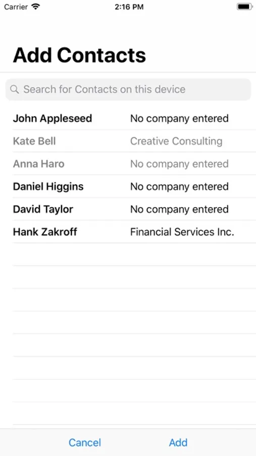 My Connexions works with ("on top of") your iOS Contacts app, so you don't have to re-enter any of the contact details a second time.