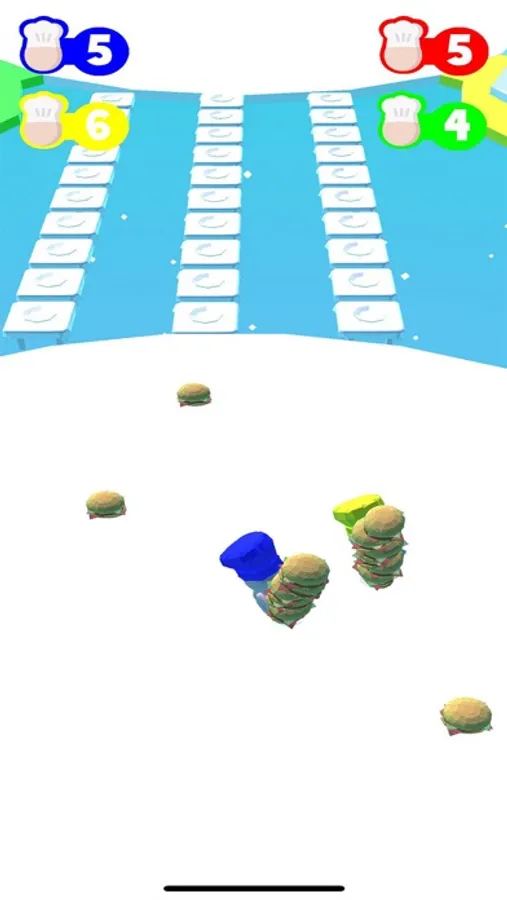 Collect your burgers and place them on a path of yours. Be careful, don't let the others beat u!