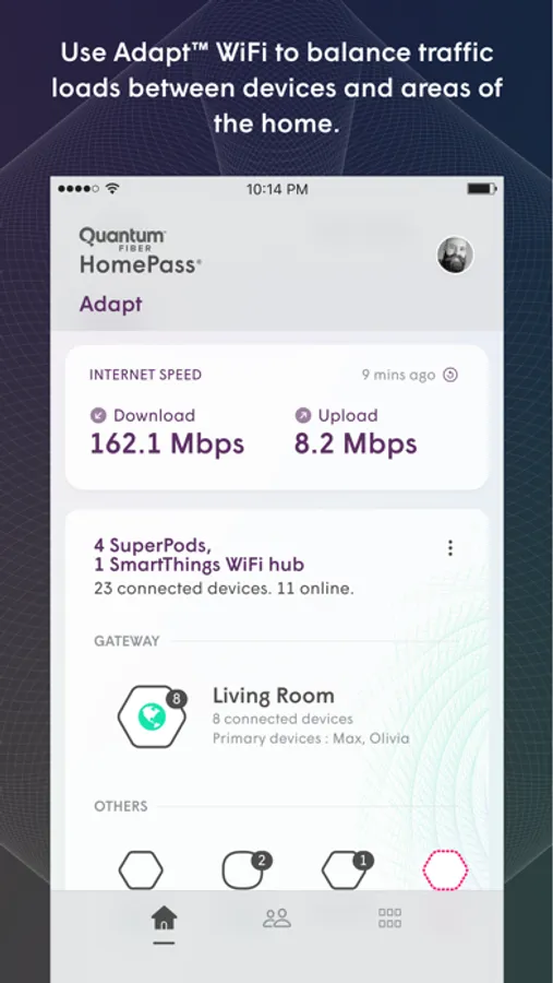 The Quantum Fiber 360 WiFi app, powered by Plume, makes staying connected to your connected world even simpler. Set up and manage your 360 WiFi Pods using your smart phone and stay connected seamlessly in every room, on any device. You call the shots with just a few taps.