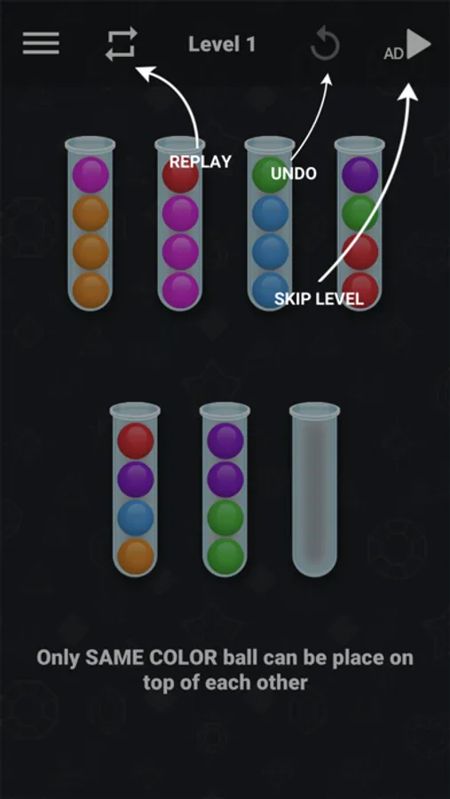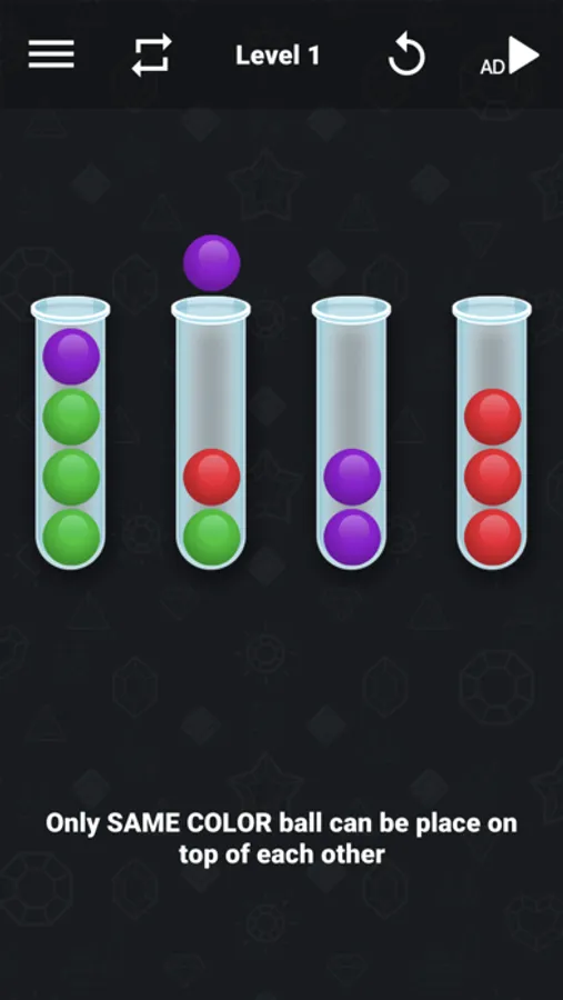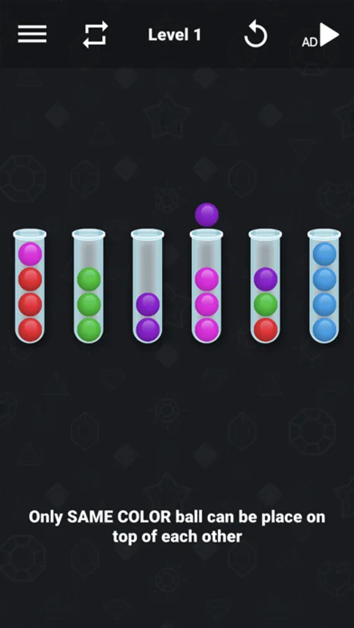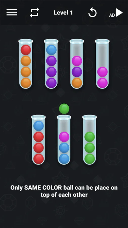Solve the game by sorting colorful ball bottle. Enjoy the mental challenge as you stack the colorful tube. Think, strategize and predict every move.