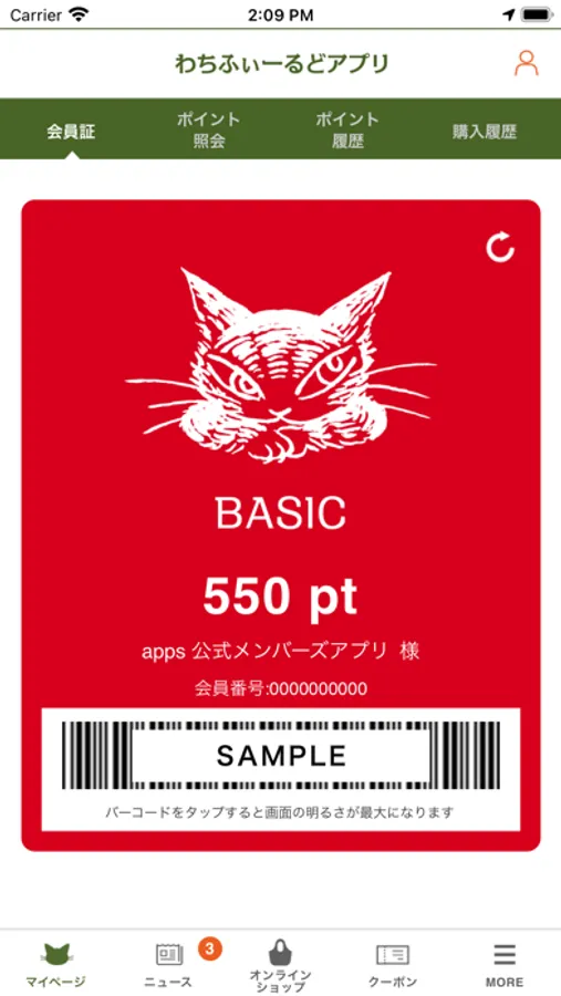 会員証バーコード(店頭でご購入の際にレジでご提示ください)