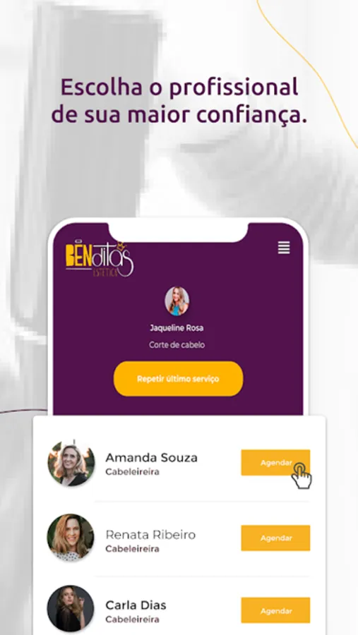 Através do app você pode agendar rapidamente um serviço com seu profissional favorito.