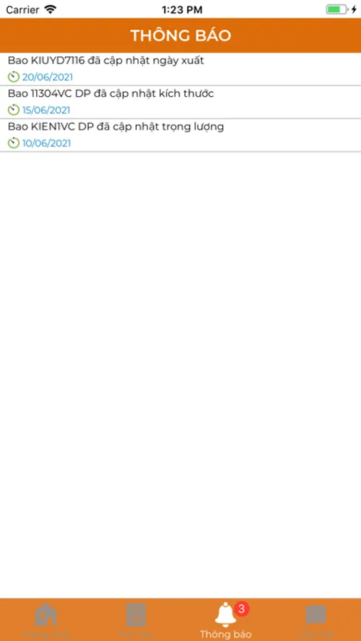 - Thông báo tức thời về tình trạng bao hàng đó.