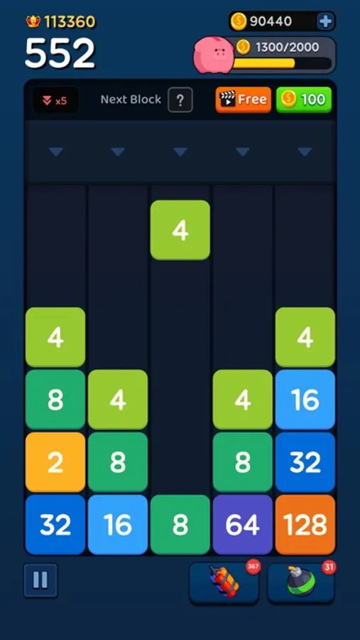 The Goal is to drag and shoot the block to create or unlock new numbered blocks. The challenge increases gradually with large numbered blocks. e.g 1024 → 2048 → 4096 and so on. Get the highest number!