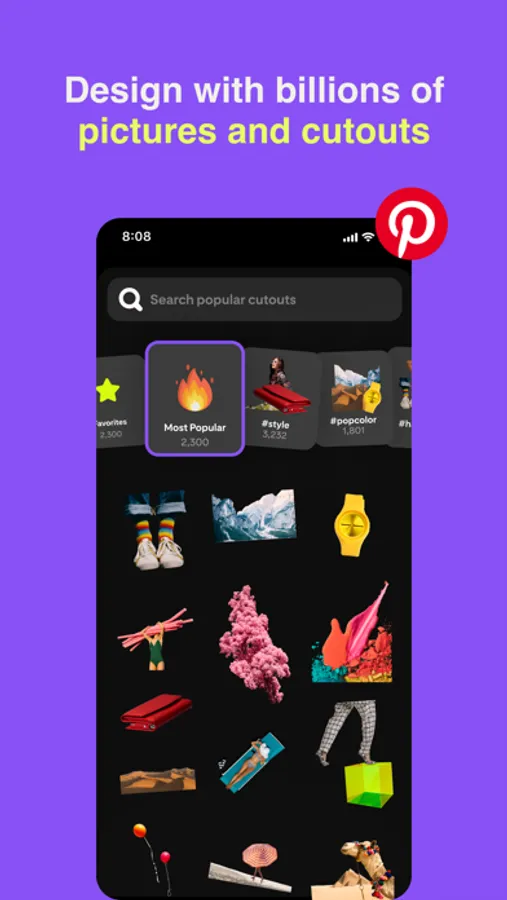 • Layer, rotate, and resize objects into still or animated collages and moodboards